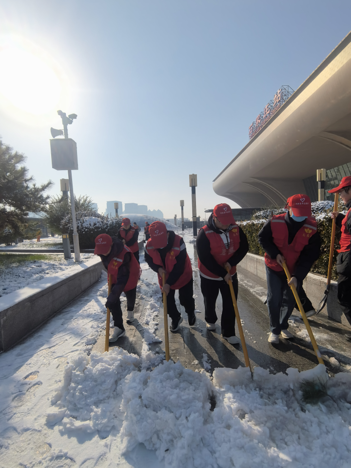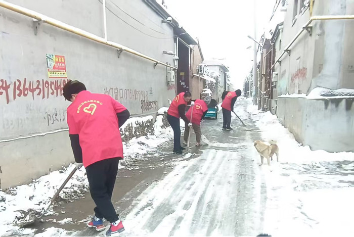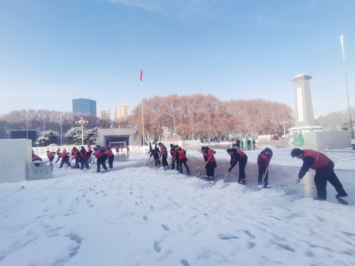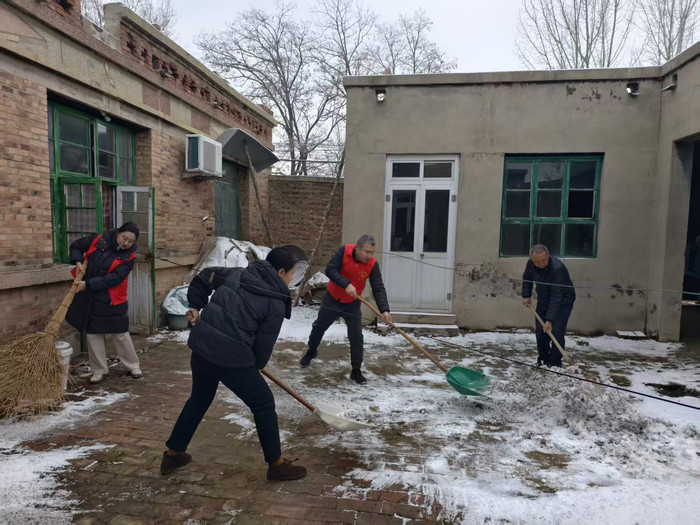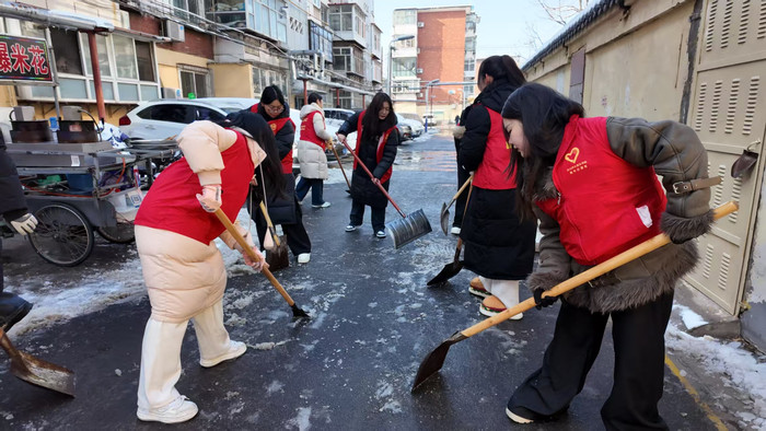 河北师范大学青年志愿者到石家庄市区老旧小区清理冰雪